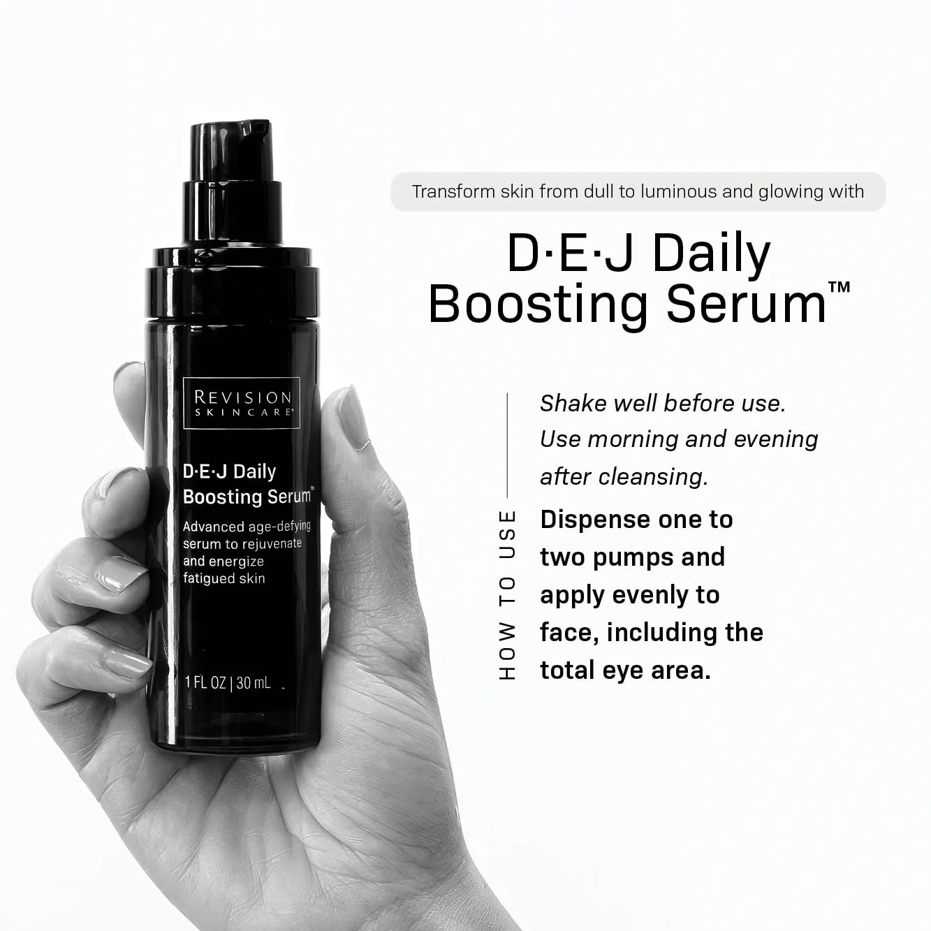 D·E·J Daily Boosting Serum® is the only anti-aging serum that boosts skin’s cellular energy and is clinically proven to visibly improve skin firmness, fine lines and wrinkles, radiance, texture, and tone. Patented technology amplifies energy in the mitochondria, which supports natural collagen and elastin, while providing comprehensive antioxidant protection to counteract skin aging at its source so skin looks, feels, and acts younger.